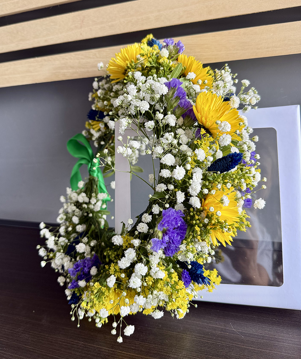 Coronita Scholar este un accesoriu floral vibrant, creat pentru a marca un moment unic si plin de emotie. Realizata manual din flori proaspete si elemente naturale, aceasta coroniță combina crizanteme galbene luminoase cu gypsophila alba delicata si accente de plante uscate in nuante mov si albastru. Contrastul cromatic aduce energie si rafinament si transforma piesa intr un simbol al reusitei, al bucuriei si al elegantei. Este o alegere potrivita pentru ceremonii scolare, evenimente academice si sedinte foto care devin peste ani amintiri de pret.